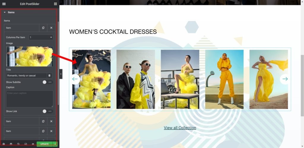 - Columns Per Page / Mobile: Select the number of slides to show at one time, from 1 to 6.